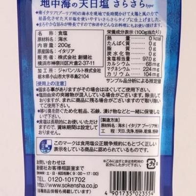 創健社 地中海の天日塩 200g×4個。南イタリアの海水を現地の伝統的な天日塩田で長時間かけて天日乾燥・結晶化 使いやすいサラサラタイプ